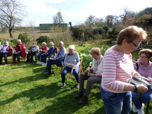 Die Wandertermine gehören fest zum Programm der LandFrauen Rinteln-Hessisch Oldendorf. Bei ihrer letzten Tour konnten 37 Teilnehmerinnen viele neue Seiten von Krankenhagen entdecken. Ortsbürgermeister Gerald Sümenicht begleitete die Wanderinnen ein Stück des Weges, erzählte Bekanntes und auch viel Neues aus der Ortschaft. Nach dem anstrengenden Aufstieg zum Thingplatz mit Führung auf dem Urnenfriedhof war beste Zeit für eine kleine Entspannungsübung, die TSV-Chefin Christel Struckmann mit den LandFrauen im neuen Sportheim absolvierte. Dann ging es weiter auf den Hof der Familie Brandsmeier. Hier lud Kirsten Brandsmeier-Schaper zur Hofführung und zu einem Garten-Picknick mit Kaffee und leckerem Kuchen, den die Krankenhäger LandFrauen speziell für ihre Vereinskolleginnen gebacken hatten.