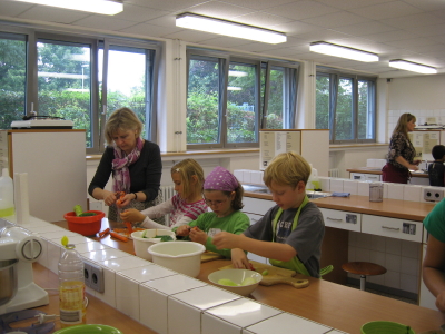 Die Kinder lernen leckere Rezepte kennen, die sie zuhause einfach nachkochen können.