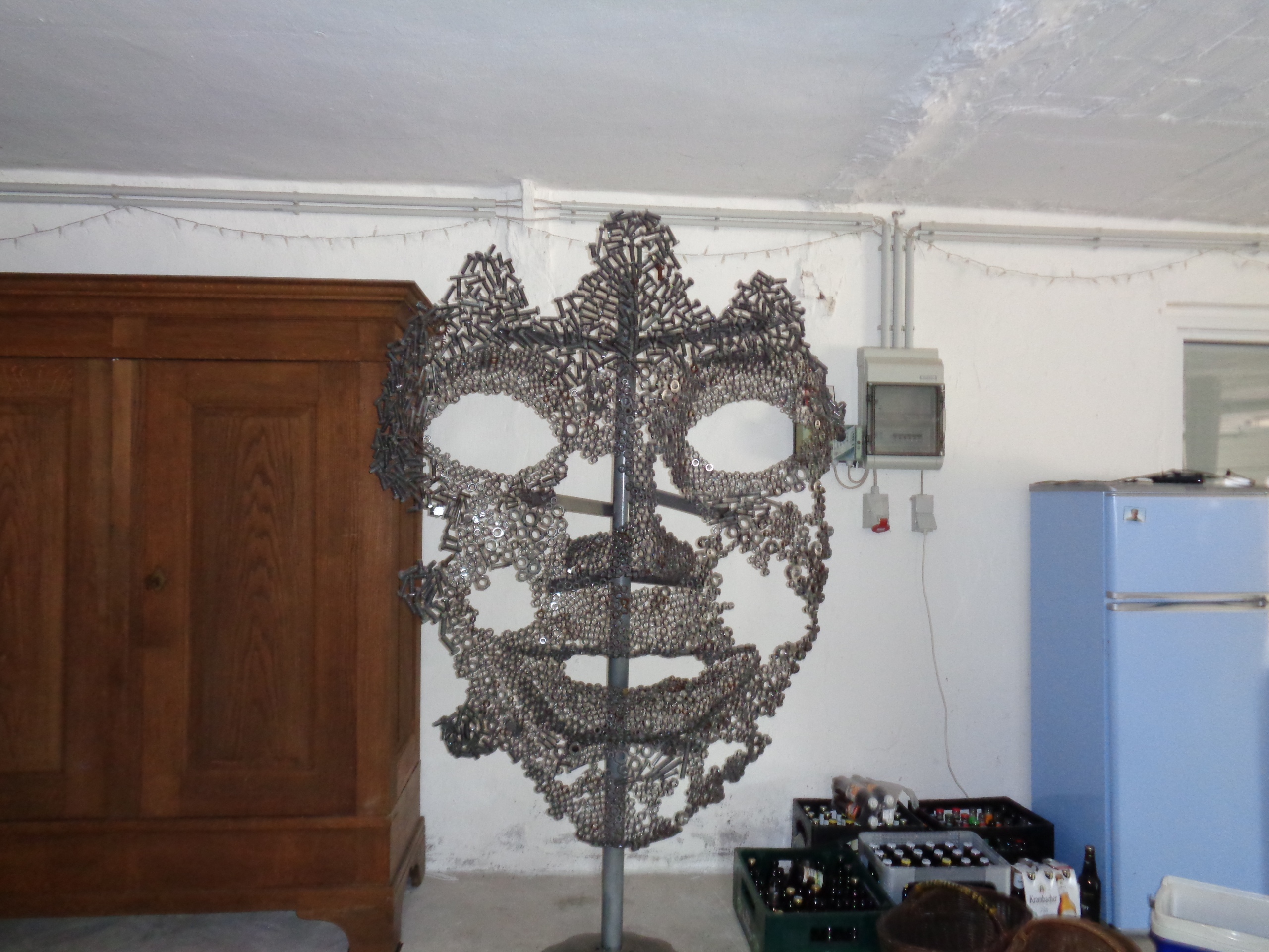 Als erstes wurde eine Kuh, passend auf der alten Kuhwiese, ausgestellt. In der Scheune ist eine ganze Band zu bewundern. Die Landfrauen kamen aus dem Staunen nicht mehr heraus. Als Werkstoff wurden Schrauben, Muttern, Werkzeuge, Musikinstrumente, Besteck, Haushaltsuntensilien, Autoteile und vieles mehr verwendet.