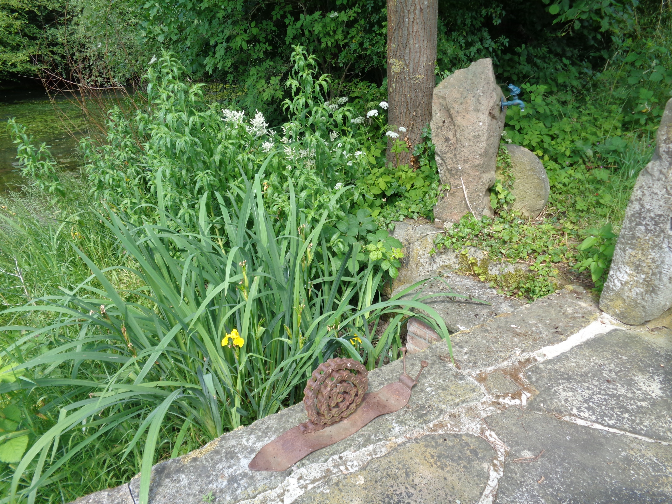 Auf dem großen Gartengrundstück waren noch einige Tiere zu bewundern: eine kleine Schnecke am Teich, ein Adler und ein „fliehendes Pferd“.