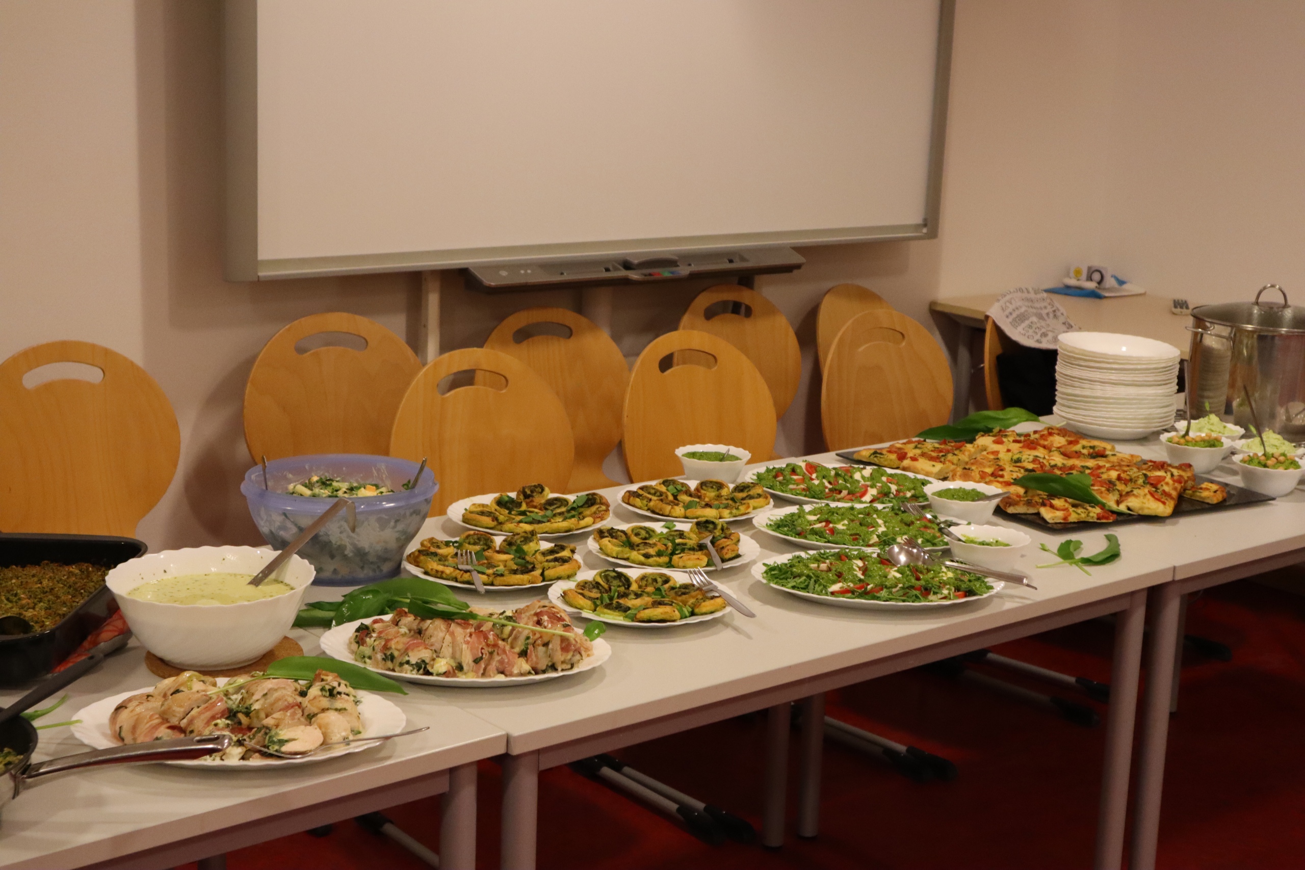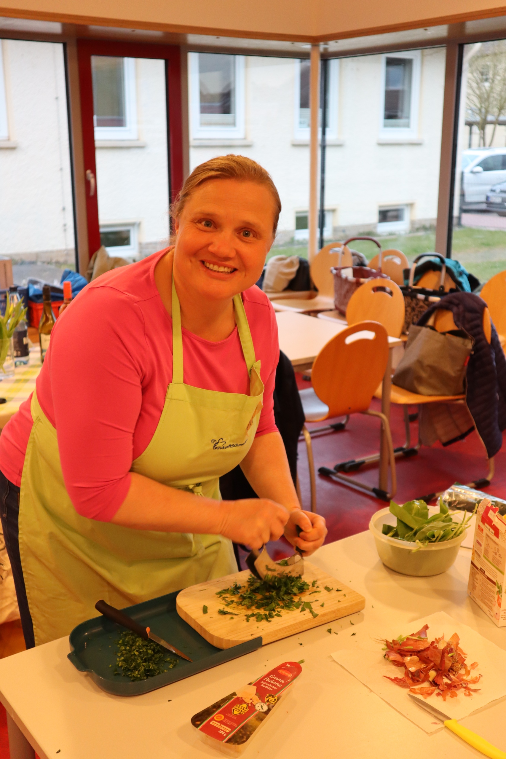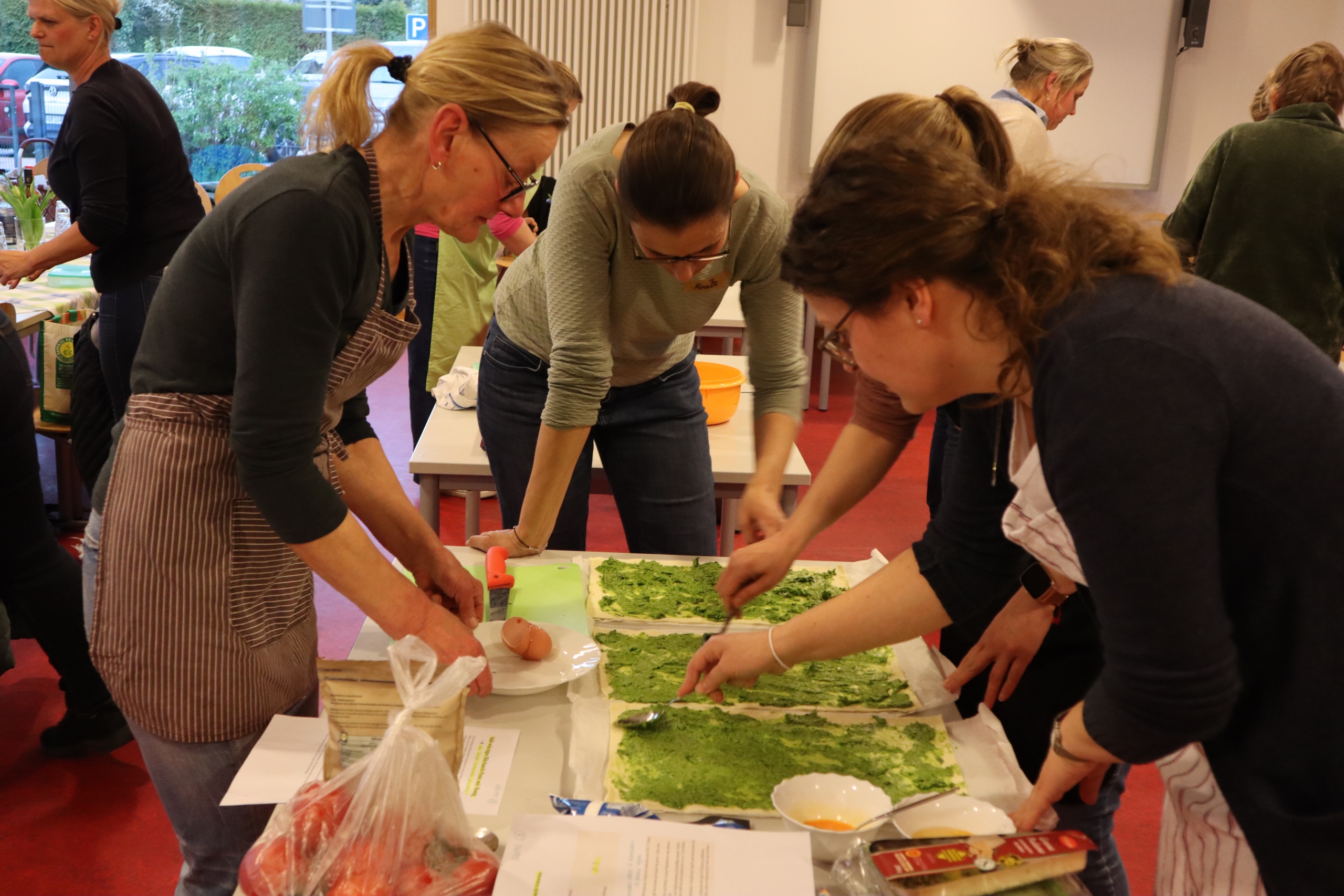 Mit viel Engagement und guter Laune bereiteten die Damen gemeinsam ein abwechslungsreiches Menü zu. Auf dem Speiseplan standen unter anderem eine aromatische Bärlauchsuppe, knusprige Focaccia, würziges Pesto sowie Spätzle mit feiner Bärlauchnote. Auch gefüllte Hähnchenfilets und selbstgemachte Bärlauchbutter durften nicht fehlen.