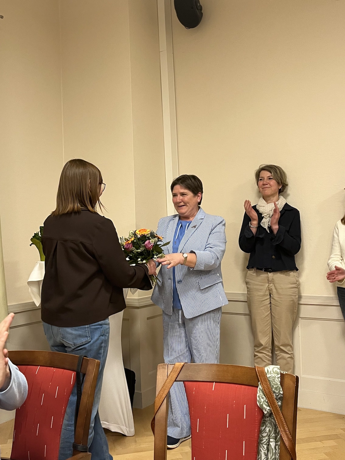 Die 1. Vorsitzende bedankte sich bei ihren Vorstandskolleginnen für die gute und konstruktive Zusammenarbeit und überreichte ihnen als Zeichen der Wertschätzung Frühlingsblumen und als süßes Dankeschön einen Gutschein aus der Eisdiele. Auch ihr wurde ein Präsent seitens des Vorstandes übergeben.