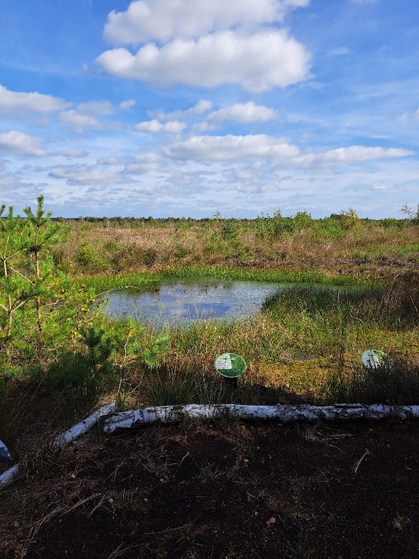Ein Highlight der Wanderung war das Hochmoor „Mardorfer Feld“, ein EU-Vogelschutzgebiet, wo die Moorrenaturierung sowie auch noch die abgetorften Flächen des Moores zu sehen sind. Besonders beeindruckend war der Blick über die weiten offenen Moorflächen, die von Wollgras, Torfmoosen und Birken durchzogen sind.