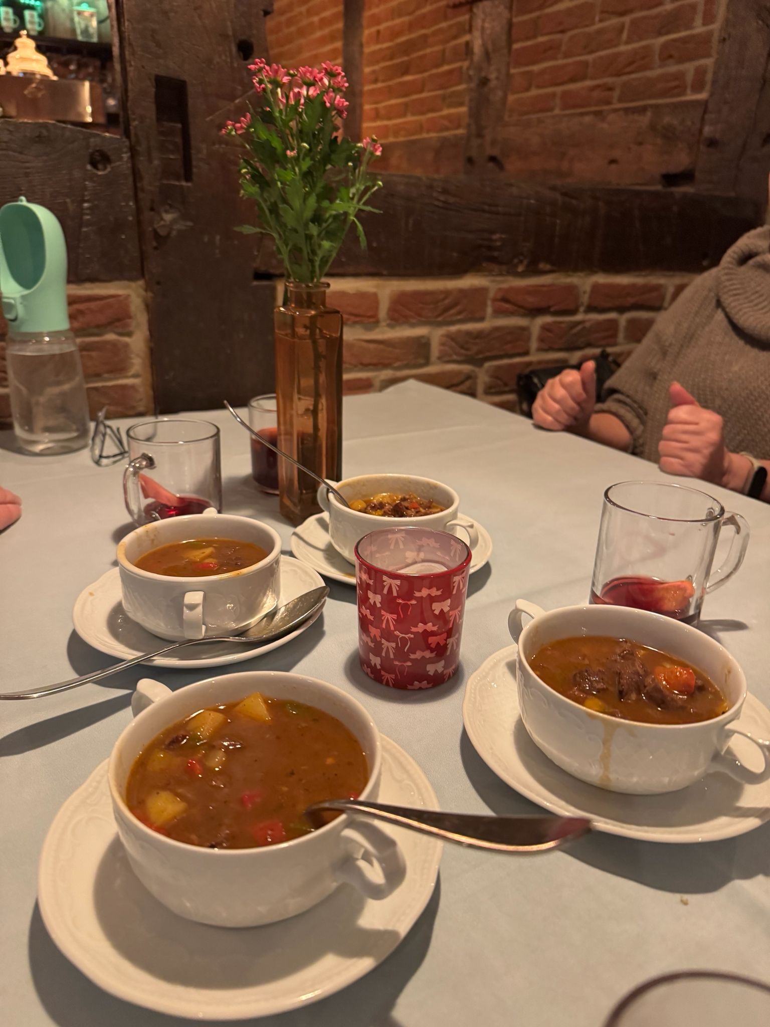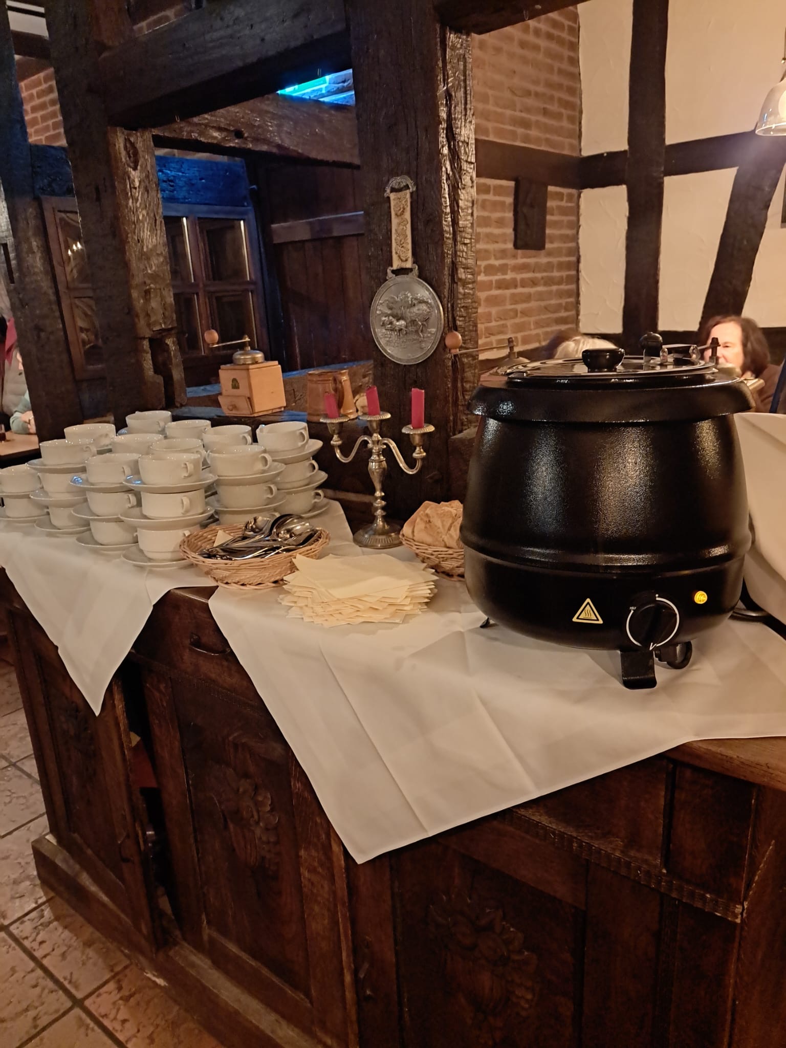 Zum Aufwärmen ging es in die Ole Dönze in Algesdorf. Dort warteten schon heißer Punsch und leckere Gulaschsuppe. Es war ein wunderschöner und fröhlicher Winterabend.