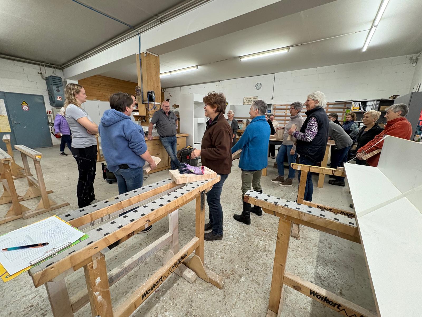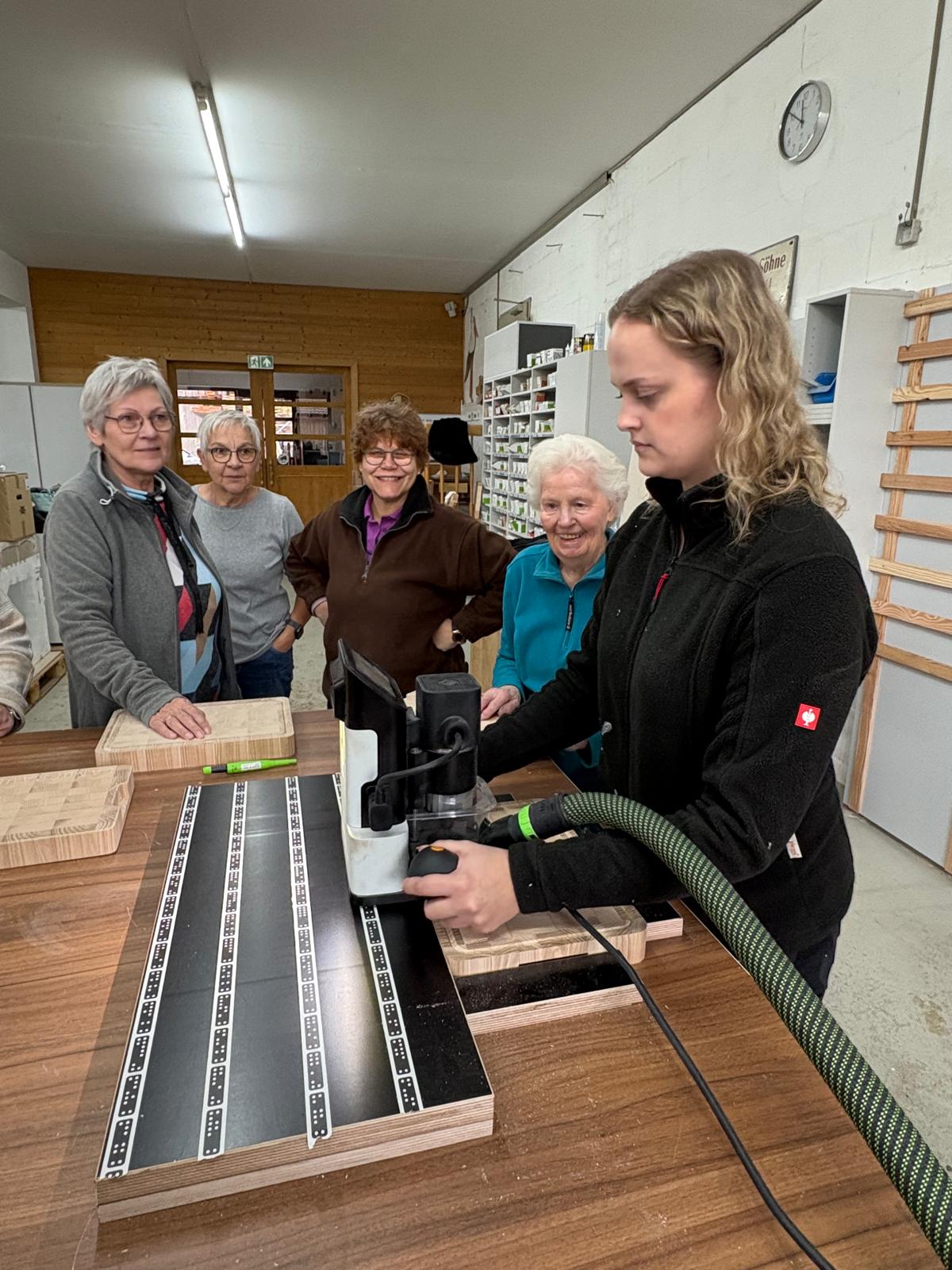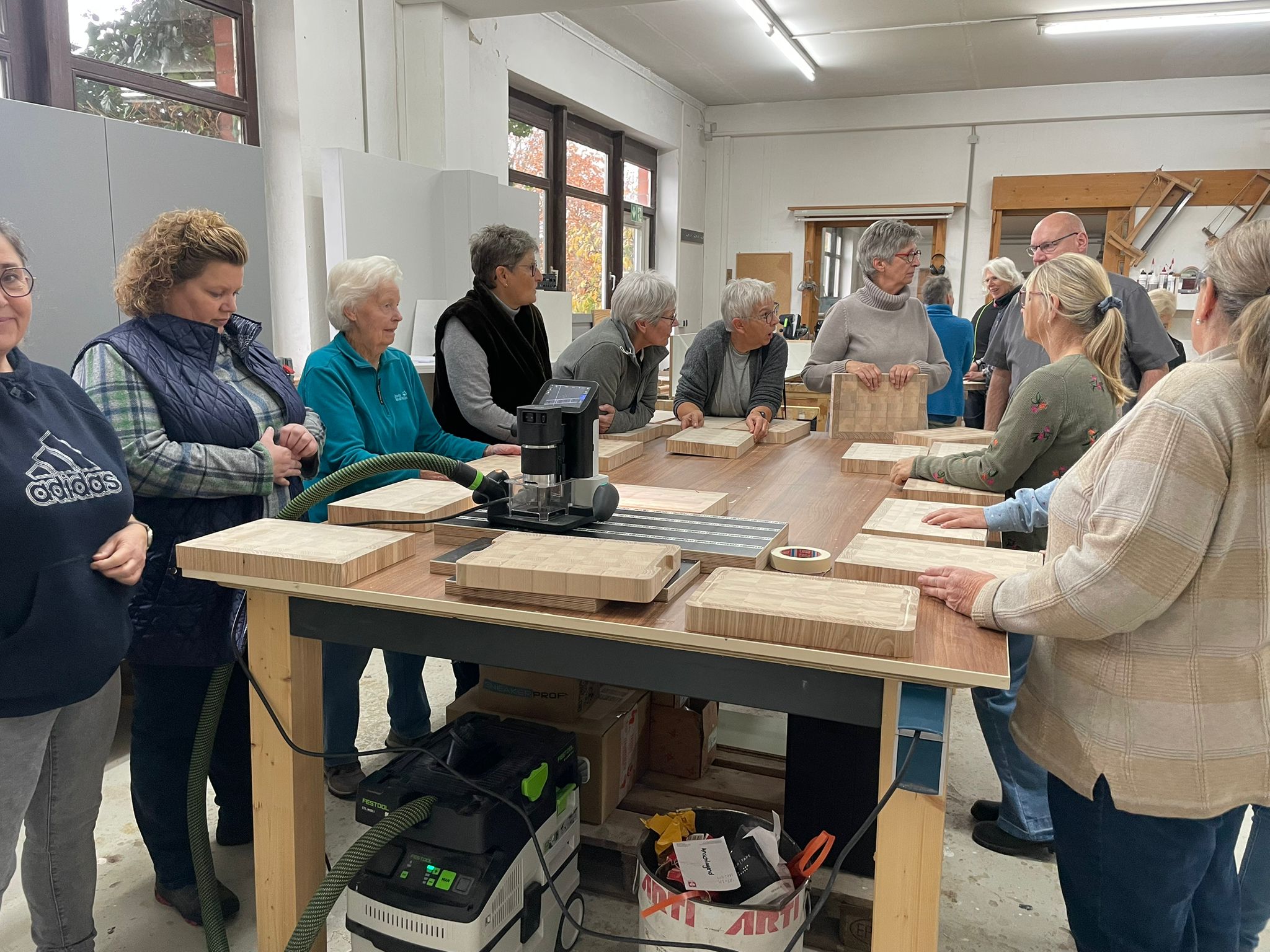 19 LandFrauen aus Rodenberg und Umgebung stellten in der Firma Holzbau Weikert ihr eigenes Schneidbrett her.