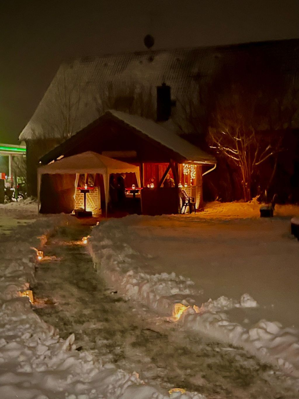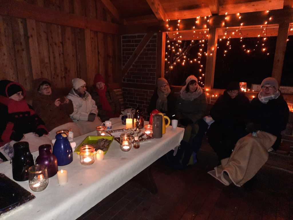 Der Weg zur Hütte war vom Schnee freigeschaufelt worden und mit Windlichtern ausgeleuchtet. Für den Hunger standen auf dem Tisch in der Hütte leckere Schmalzbrote – das Apfel-Zwiebel-Schmalz war selbst gemacht von Waltraud Könemann.
