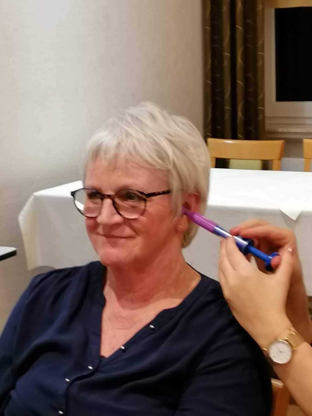 Auch eine Abformung vom Ohr für eine Maßanfertigung des IM-OHR-GERÄTS wurde im Vortrag demonstriert bei einer Teilnehmerin.