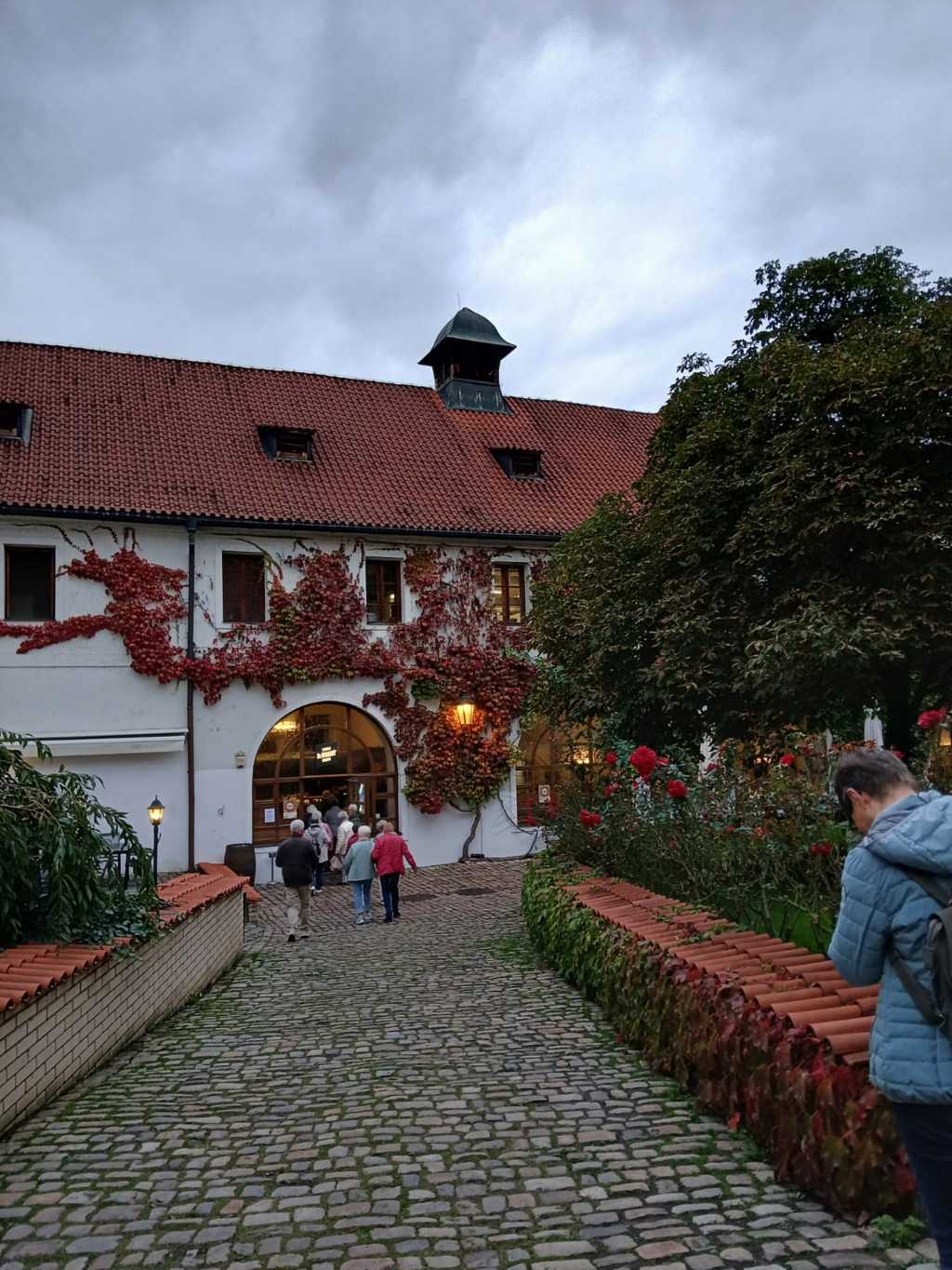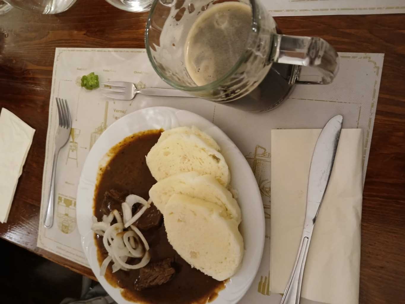 Um 18.00 Uhr waren wir angemeldet zum 3-Gang-Abendessen, Hauptgang: Rindergulasch mit Semmelknödel, in der Klosterbrauerei Strahow – es war sehr lecker !