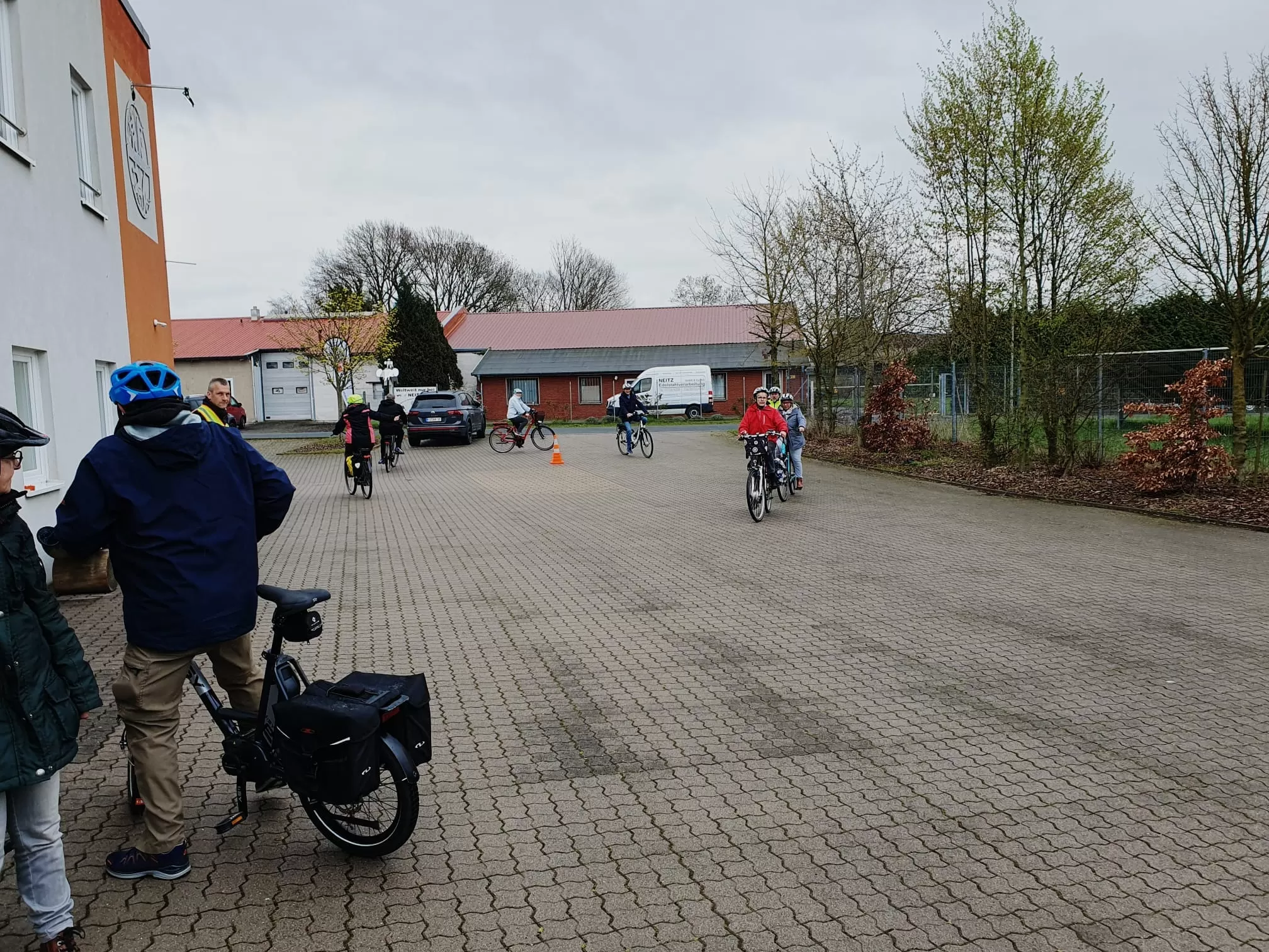 Das Auf- und Absteigen, Slalomfahren sowie Abbiegen und Bremsen wurde mit fachkundiger Unterstützung der Experten trainiert. Das Tragen eines Fahrradhelms war aus versicherungstechnischen Gründen Pflicht.